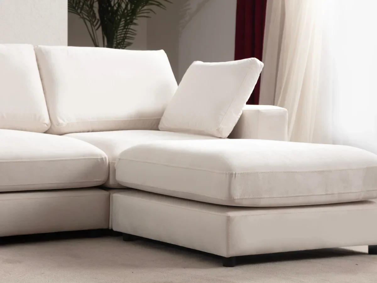 - Confort inégalé : Les coussins en mousse ultra-douce apportent un soutien optimal tout au long de la journée. Le revêtement en velours blanc doux et soyeux ajoute une touche de raffinement.