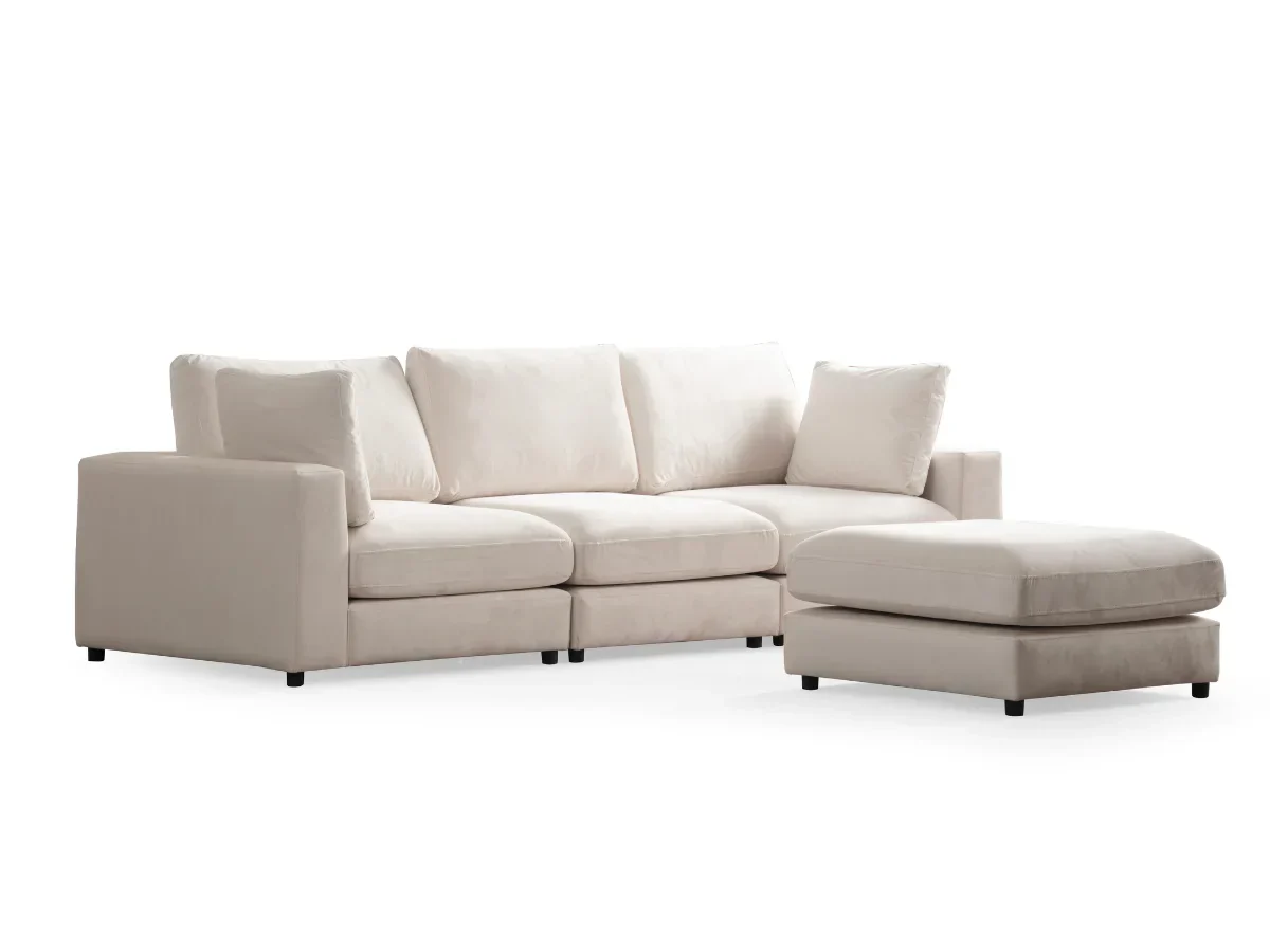 Le canapé Julika en velours combine à la fois design et fonctionnalité. Ses lignes minimalistes et ses accessoires complémentaires, comme ses coussins et son pouf modulable, lui permettent d’apporter du caractère à votre intérieur tout en offrant une assise extrêmement confortable.
