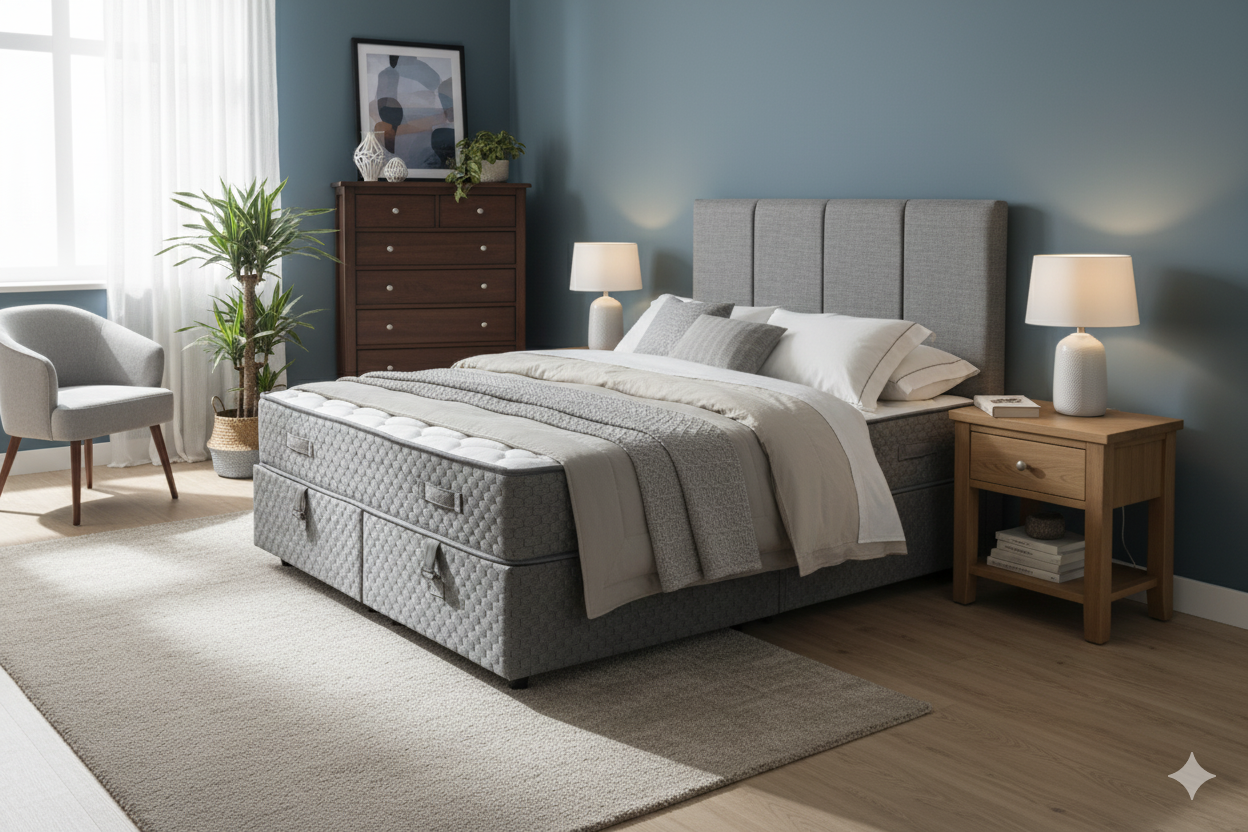 Le lit coffre Oslo Gris allie design contemporain, confort premium et fonctionnalité ingénieuse. Disponible en 140×190 cm et 160×200 cm, il est équipé d’un matelas intégré de 25 cm à ressorts ensachés, garantissant un soutien ferme, une excellente indépendance de couchage et un sommeil réparateur.