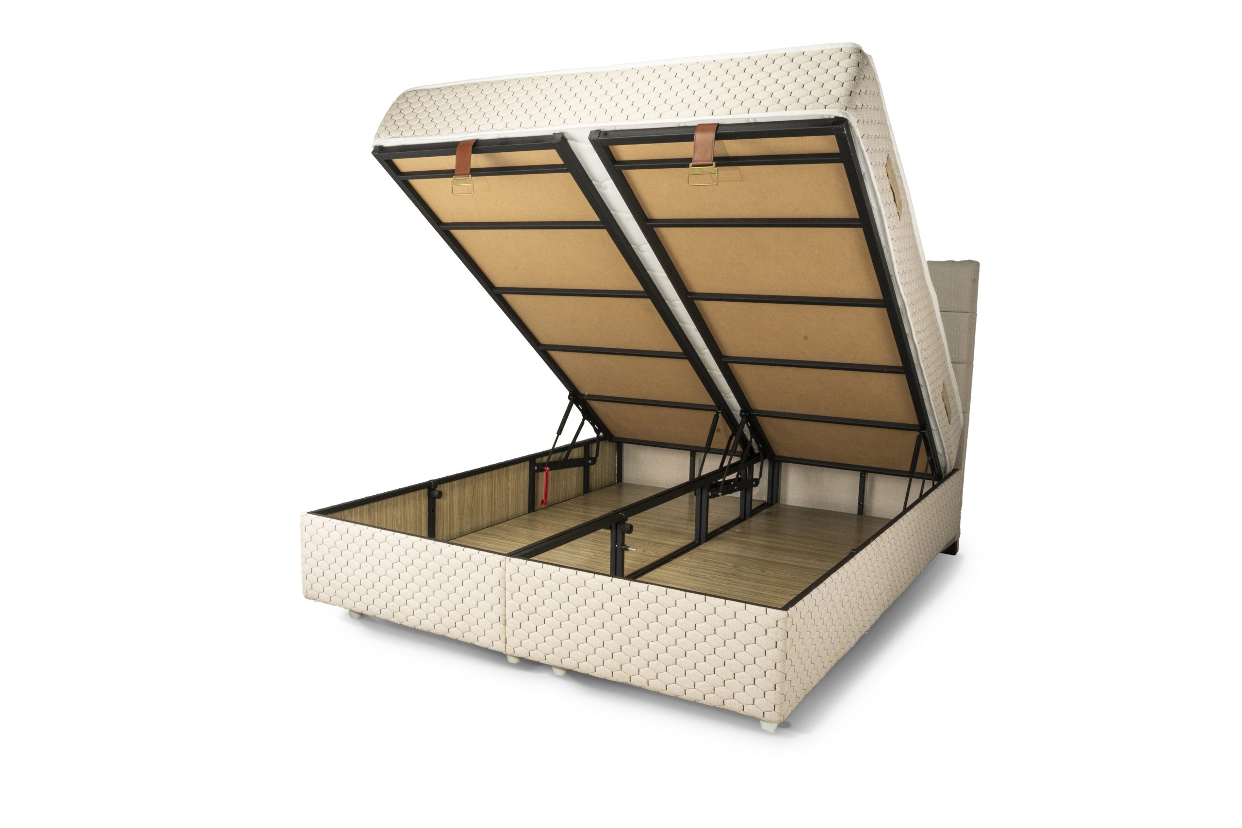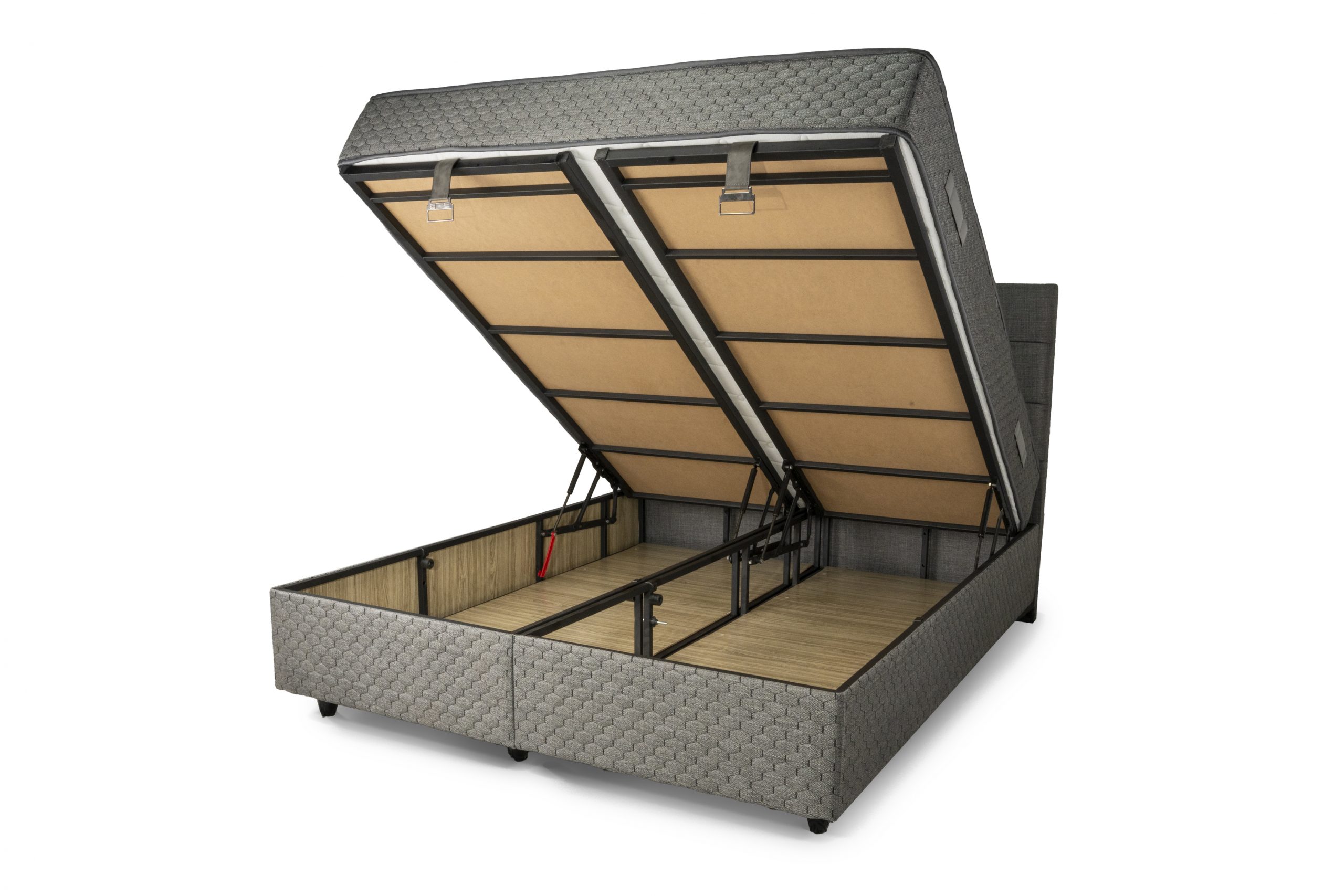Grâce à son coffre de rangement spacieux, accessible par un système d’ouverture assistée, vous profitez d’un espace pratique et discret pour stocker linge de maison, oreillers ou couvertures.