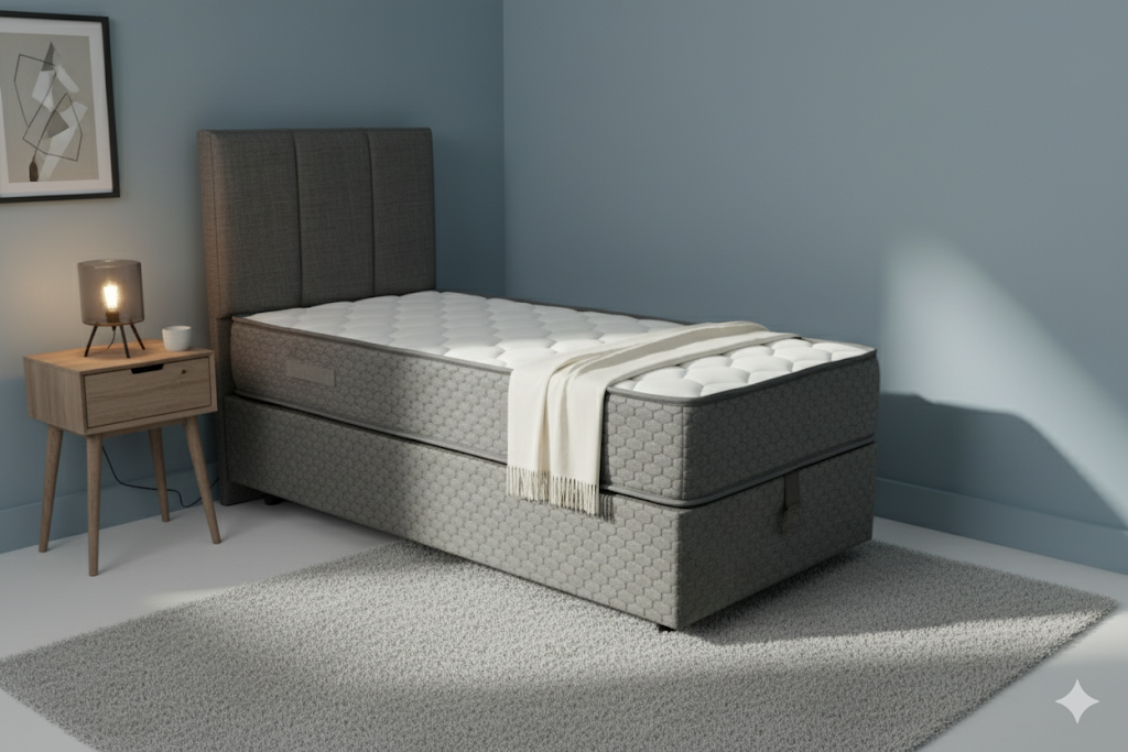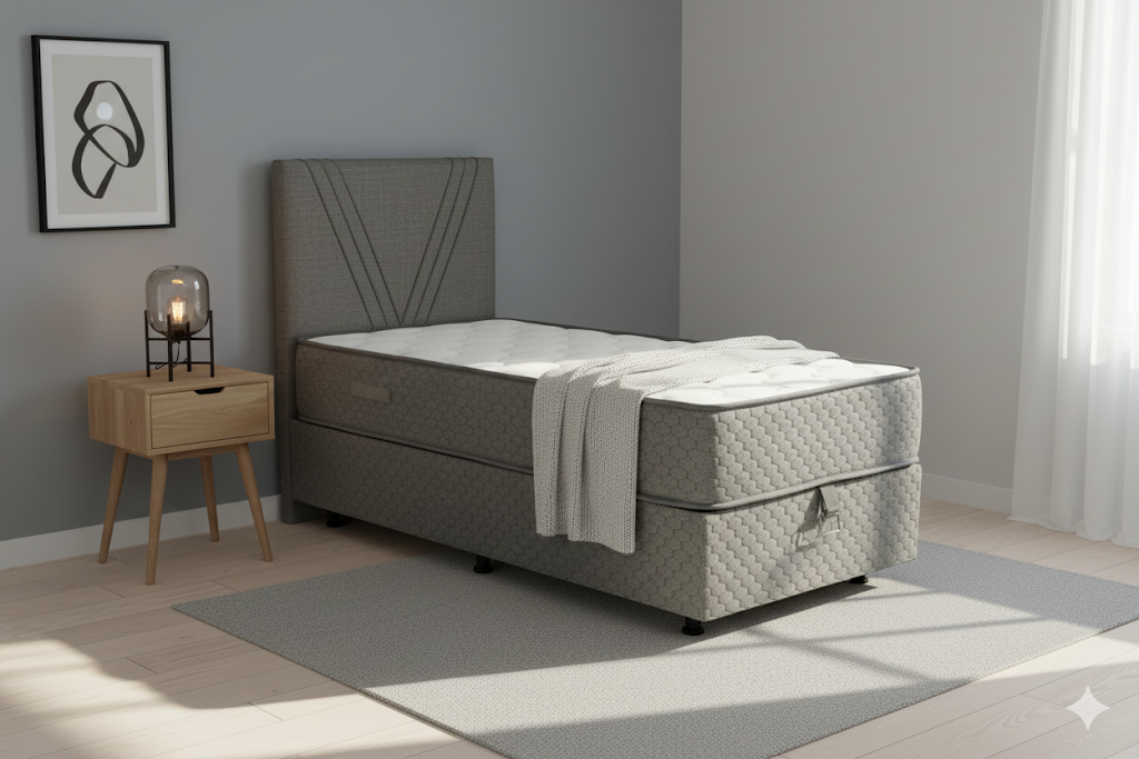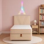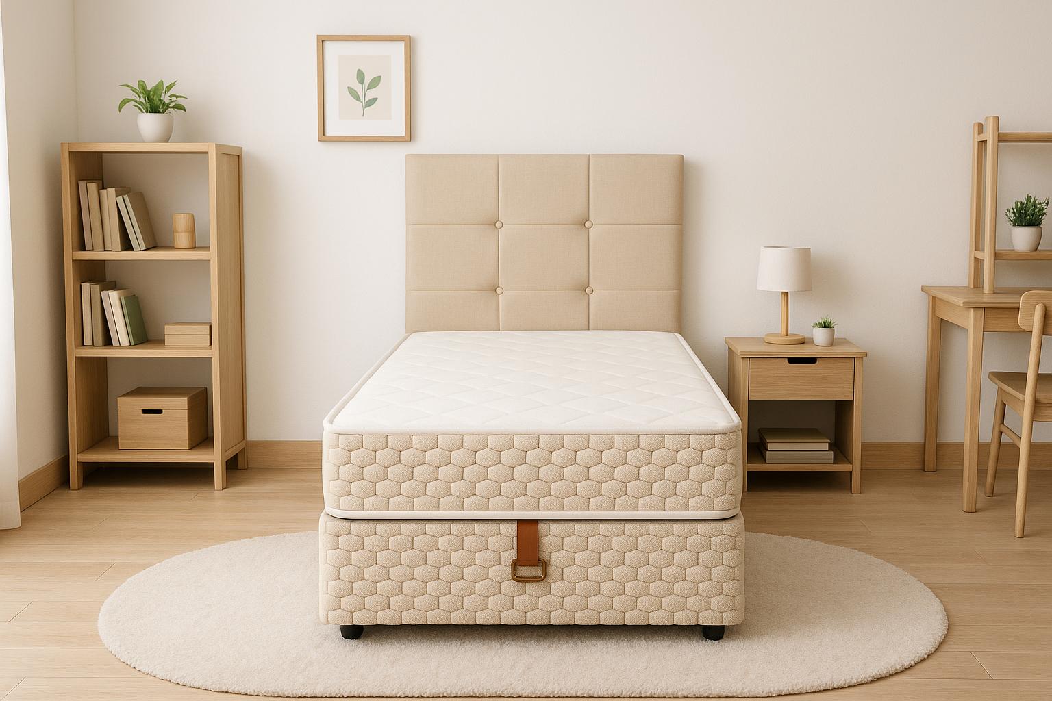 Le lit coffre 90×190 Beige est parfait pour combiner style, confort et gain de place dans une chambre compacte.
