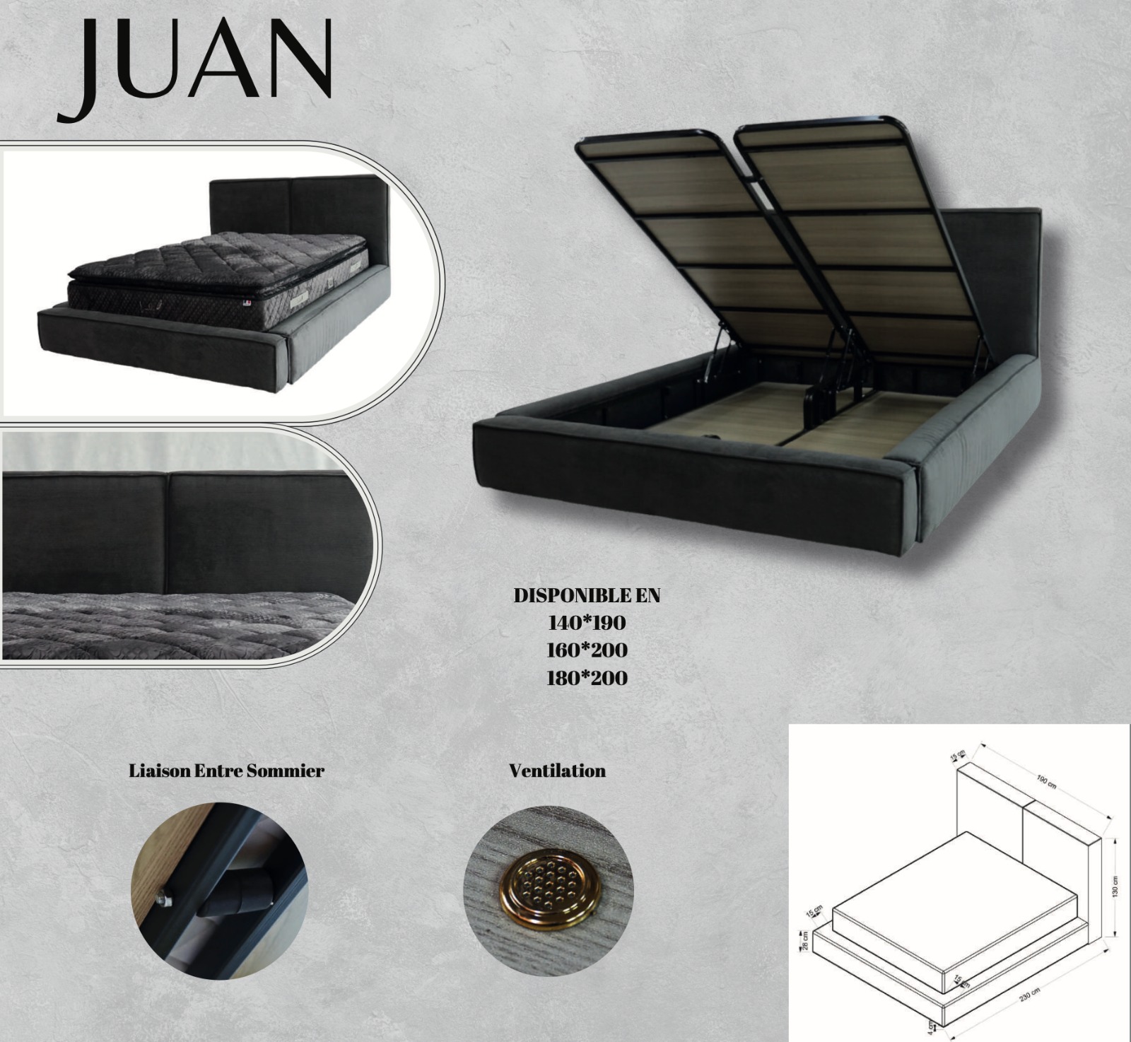 Donnez à votre chambre à coucher un grain de modernisme avec votre lit double coffre capitonné. Décliné en beige, votre lit se marie parfaitement à tout type d’intérieur, vintage, classique ou plus actuel. Pensé avec une inspiration de décoration tendance, votre lit double coffre capitonné arbore une finition royale et élégante accentuée par une tête de lit, des pieds en métal chromé et un tissu haut de gamme beige. Profitez d’un double coffre suffisamment grand pour y ranger facilement couettes, draps, coussins et plaids. Votre lit double coffre vous est proposé en version 2 places dont trois dimensions différentes pour vous assurer une nuit douce et confortable, seul ou accompagné.